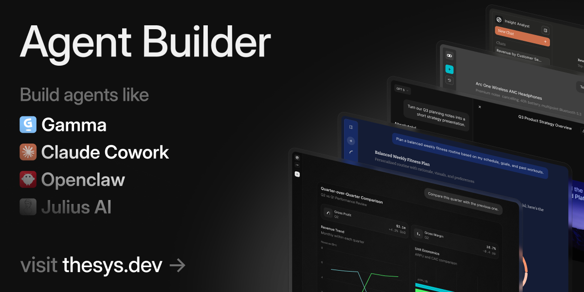 But with Thesys Agent Builder, you can build a conversational analytics agent in just 3 easy steps: