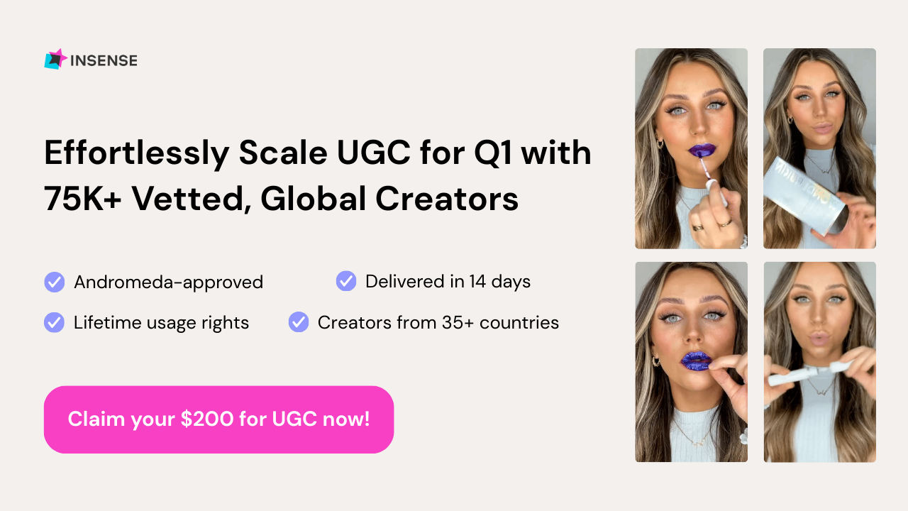 Speed of sourcing becomes the bottleneck. Platforms like Insense solve that by turning one brief into usable creator content quickly, with creators who already fit the buyer and assets that can ship straight into Meta, TikTok Shop, Spark Ads, or Partnership Ads.