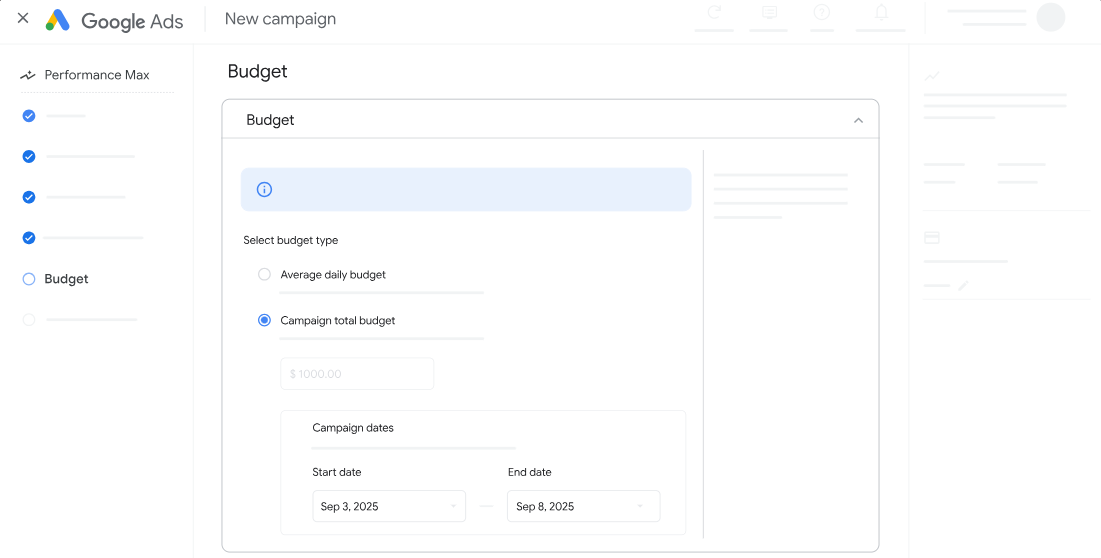 1. Total Campaign Budgets for Fixed Runs - Google now supports campaign total budgets for Search, Performance Max, and Shopping. You set one fixed amount for the full campaign duration, and Google paces spend to hit the end date.