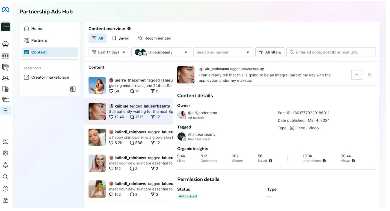 1. Creator Discovery - Meta’s Partnership Ads Hub now surfaces all IG and FB content tagging your brand plus full in-hub metrics, helping marketers identify authentic creator posts faster and convert them into partnership ads that consistently outperform standard campaigns.